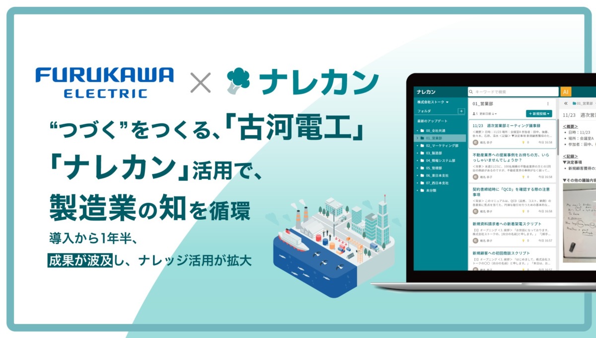 株式会社Stockが、古河電気工業株式会社様(以下「古河電工様」)における「ナレカン」の運用状況に関するプレスリリースを公開したことをお知らせいたします。
