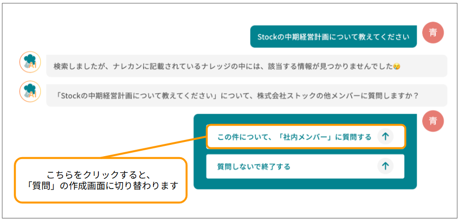 (3)検索でヒットしなかったナレッジは、そのまま「質問」できるようになりました!